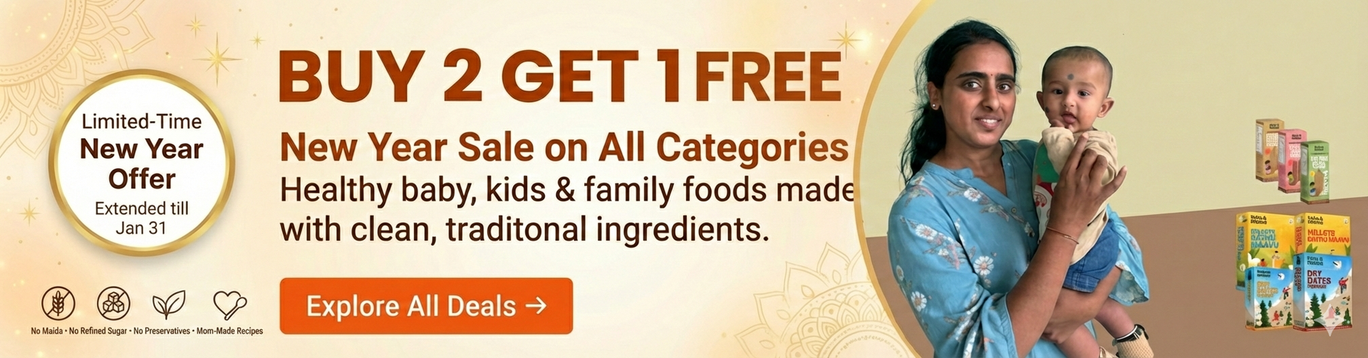Absolutely! Our products are carefully crafted with your baby's safety in mind. They are free from salt, sugar, harmful preservatives, and additives.