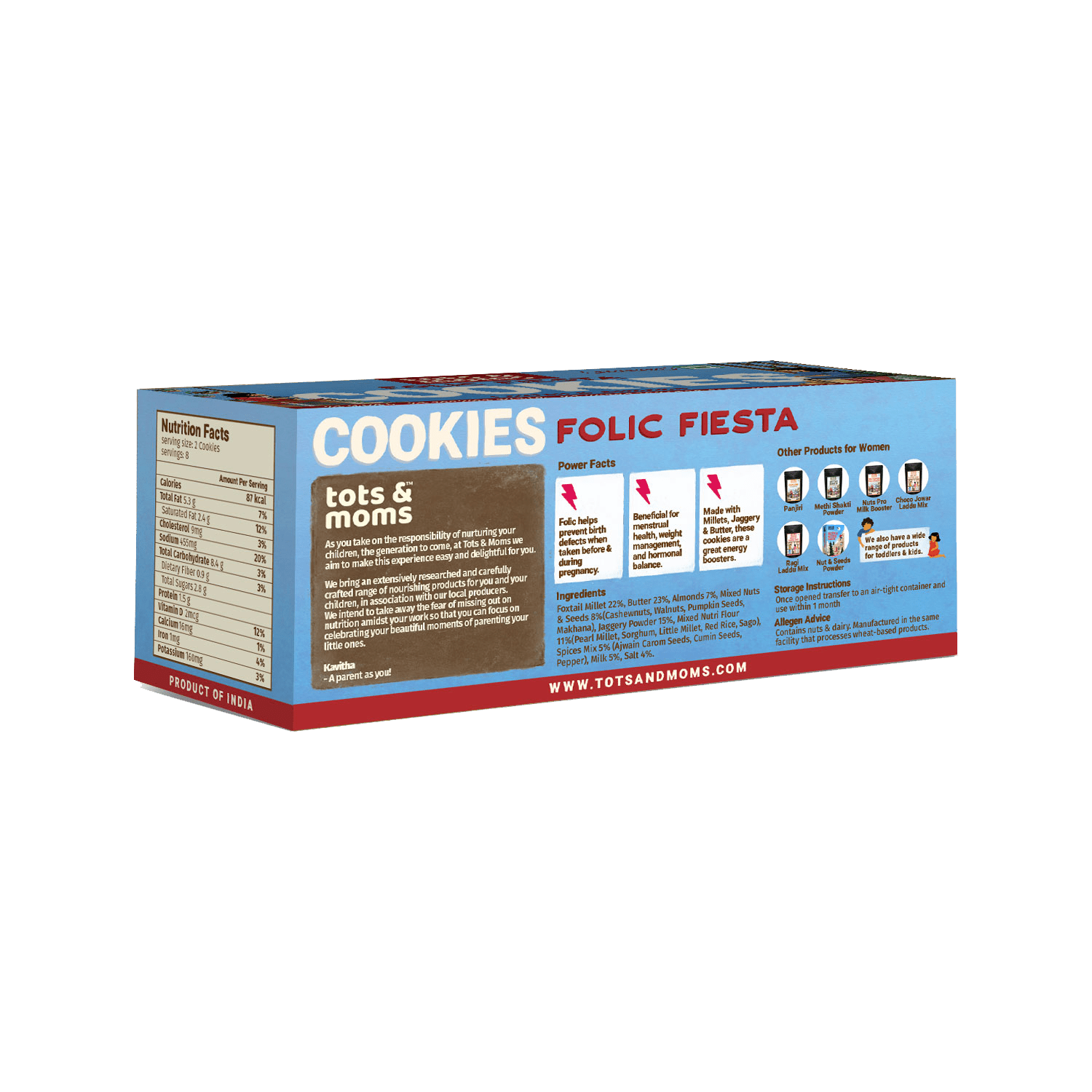 Tots and Moms Folic Fiesta Cookies, are the best snacking option for pregnant. In this journey of Motherhood replacing junk from your snack time with healthy and nutritional Folic Fiesta Cookies helps pregnant in various ways. It contains all the essential nutrients like proteins, healthy fats, vitamins, and minerals. It provides a sustained source of energy and helps in a baby's brain, nervous system development, and overall growth.