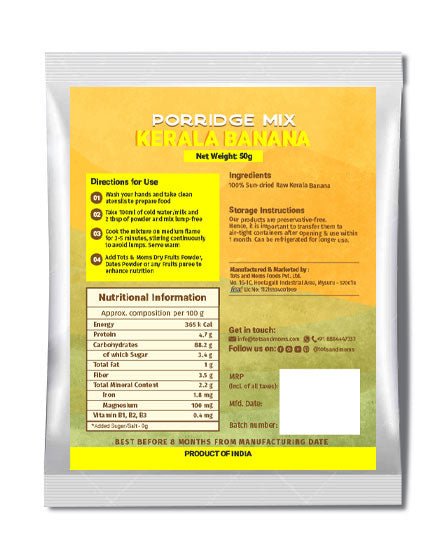 Kerala Banana Powder helps in healthy weight gain, is naturally sweet, easy on the tummy, and also helps relieve constipation.