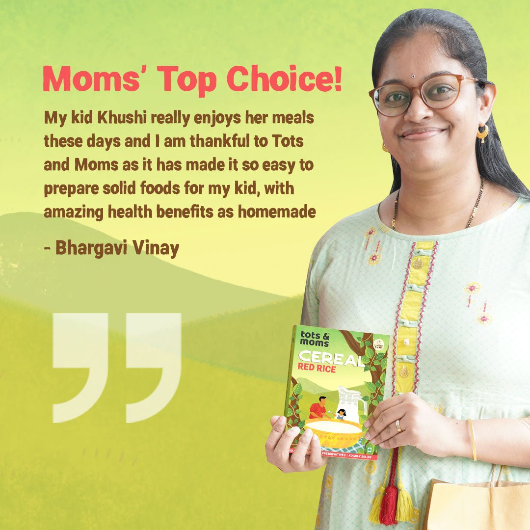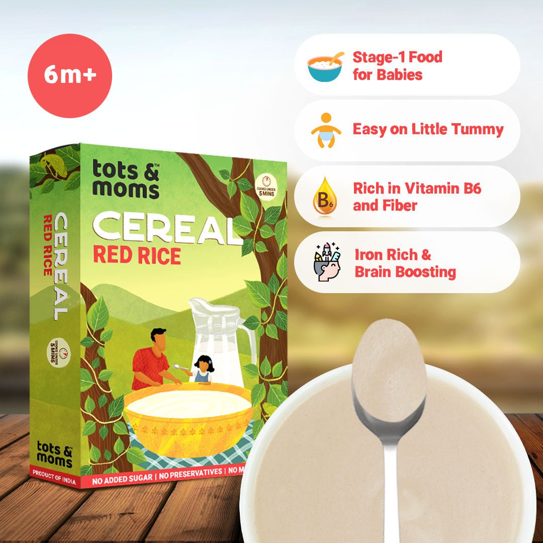 Tots and Moms Red Rice Cereal recipe is created by a Mom. It is made out of red rice and is a great nutritious and wholesome breakfast option for the whole family. No Chemicals, No preservatives, No sugar, No artificial flavors, No additives are used. It is manufactured under altmost hygiene conditions.